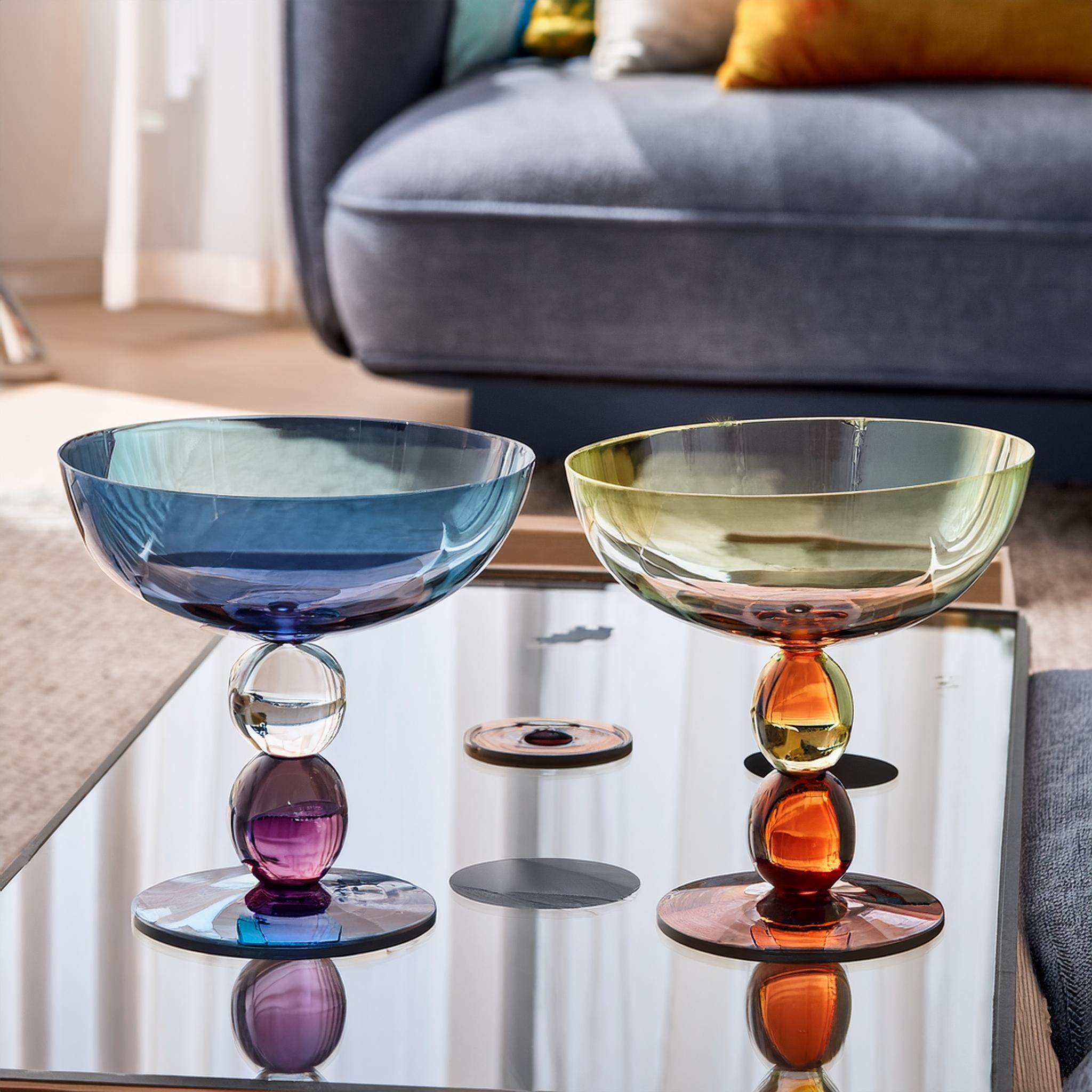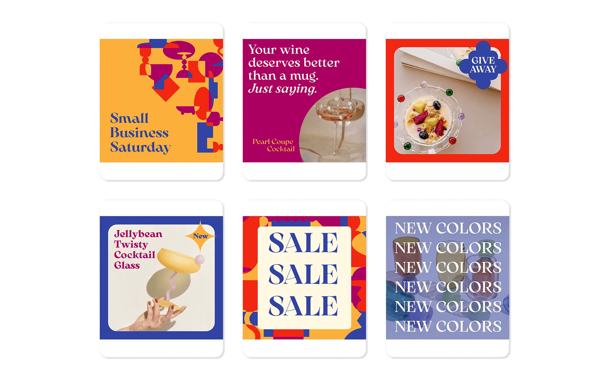 The brand identity draws inspiration from the transparent nature of glass and the beauty of overlapping shapes, creating a visual language that feels both modern and timeless. The glassware itself is so unique, the color pallette should be just as bold.